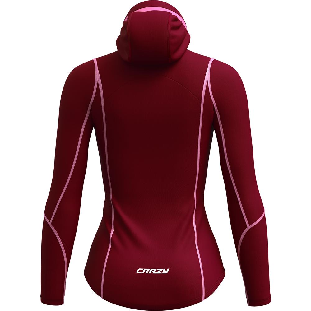 CRAZY PULL EXIT е функционален дамски mid-layer изработен от висококачествени материи, които съчетават топлина, еластичност и лекота. Дизайнът е модерен и атлетичен, с елементи, които го правят подходящ както за активен спорт, така и за ежедневни активности на открито. Материята Vuelta, произведена в Италия, осигурява отлични топлинни свойства и висока дишаемост, което го прави подходящ за различни климатични условия през есента и зимата.